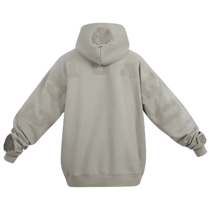 NHL CHICAGO BLACKHAWKS WINGSPAN MEN’S DROP SHOULDER FLEECE PULLOVER HOODIE (TAUPE)