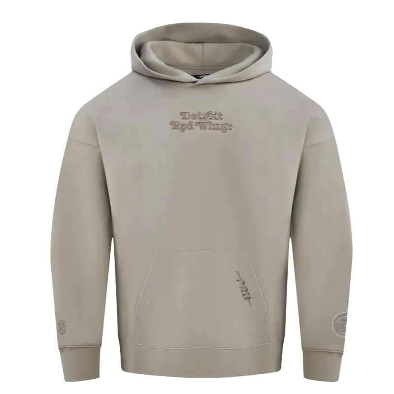 NHL DETROIT RED WINGS WINGSPAN MEN’S DROP SHOULDER FLEECE PULLOVER HOODIE (TAUPE)