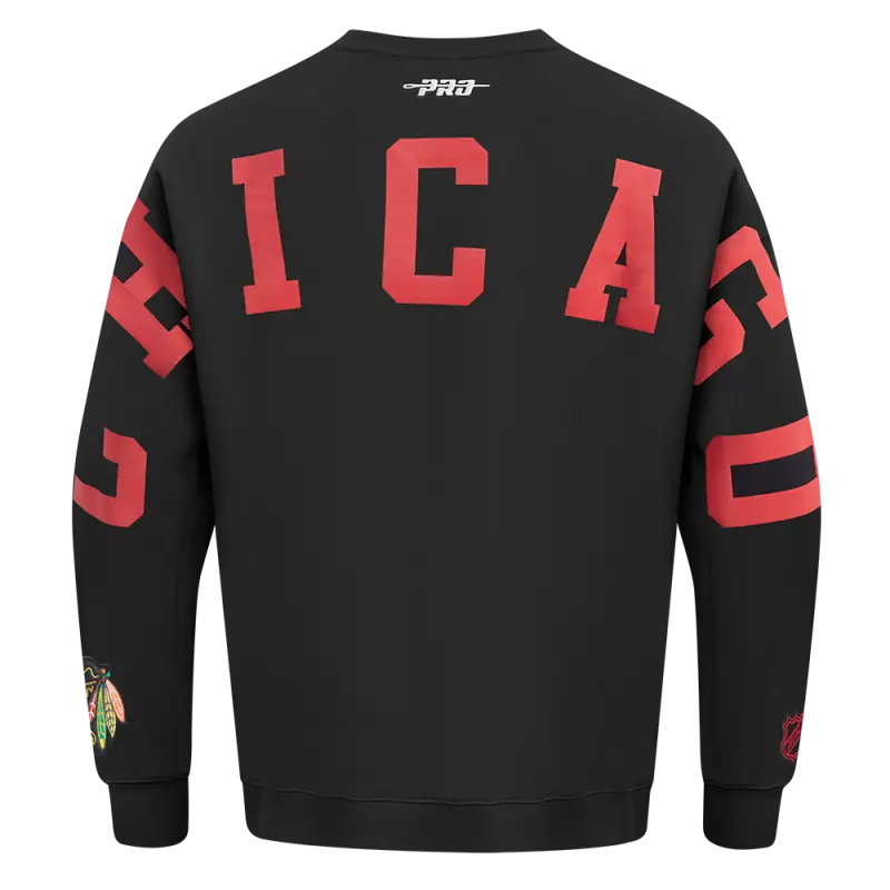 Home / Shop / SWEATSHIRTS / NHL CHICAGO BLACKHAWKS WINGSPAN MEN’S DROP SHOULDER FLEECE CREWNECK (BLACK)