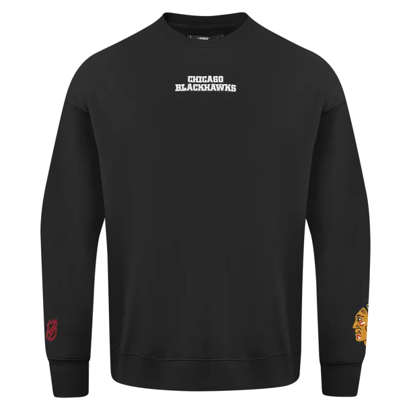 NHL CHICAGO BLACKHAWKS WINGSPAN MEN’S DROP SHOULDER FLEECE CREWNECK (BLACK)
