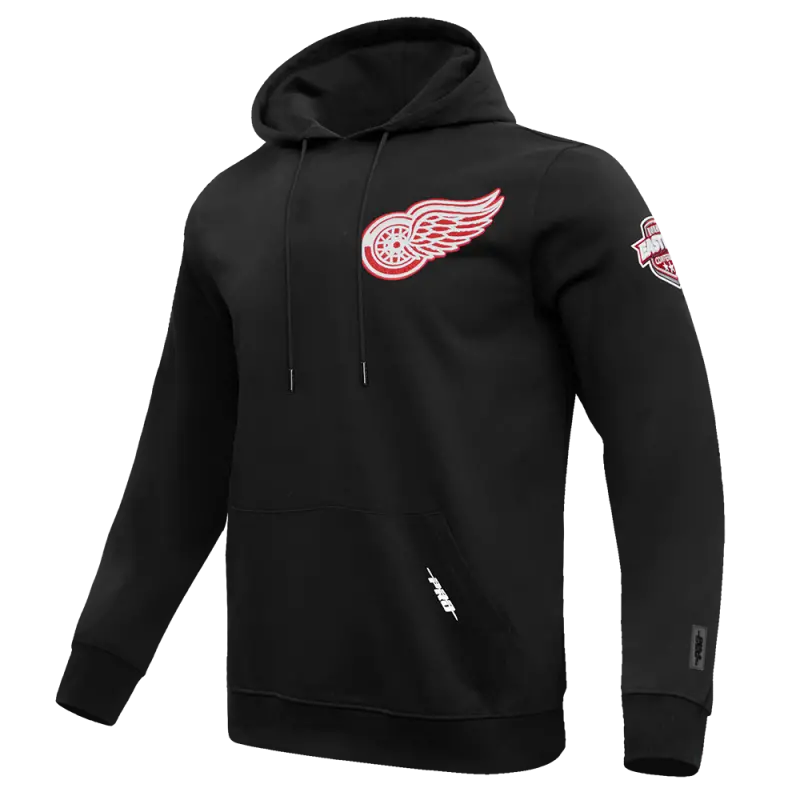 NHL DETROIT RED WINGS CLASSIC CHENILLE MEN’S PULLOVER HOODIE (BLACK)